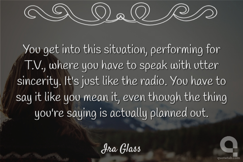 You get into this situation, performing for T.V., where you have to speak with utter sincerity. It's just like the radio. You have to say it like you mean it, even though the thing you're saying is actually planned out.