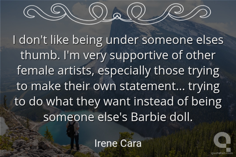 I don't like being under someone elses thumb. I'm very supportive of other female artists, especially those trying to make their own statement... trying to do what they want instead of being someone else's Barbie doll.