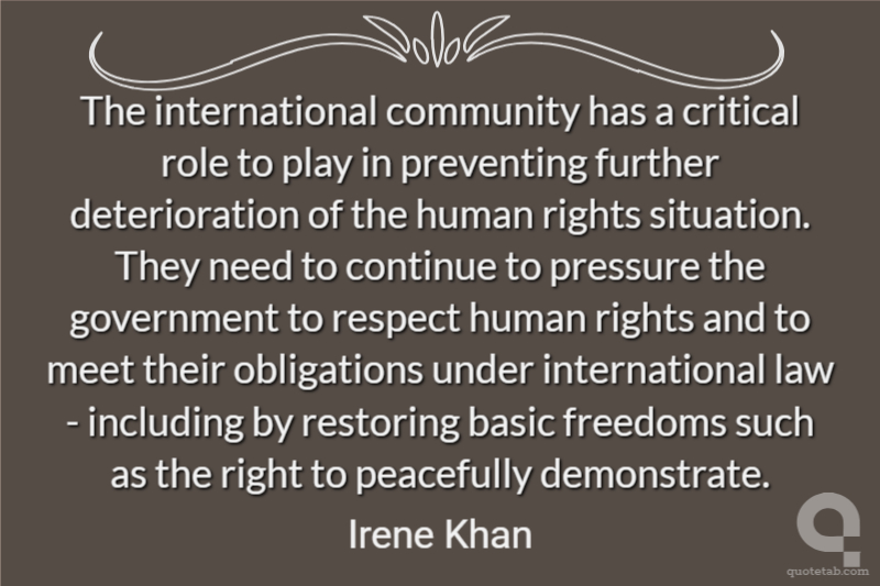 The international community has a critical role to play in preventing further deterioration of the human rights situation. They need to continue to pressure the government to respect human rights and to meet their obligations under international law - including by restoring basic freedoms such as the right to peacefully demonstrate.