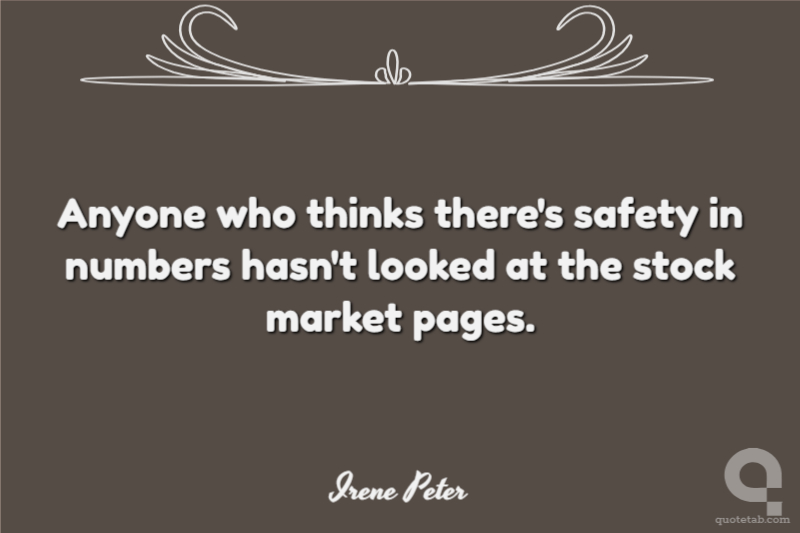 Anyone who thinks there's safety in numbers hasn't looked at the stock market pages.