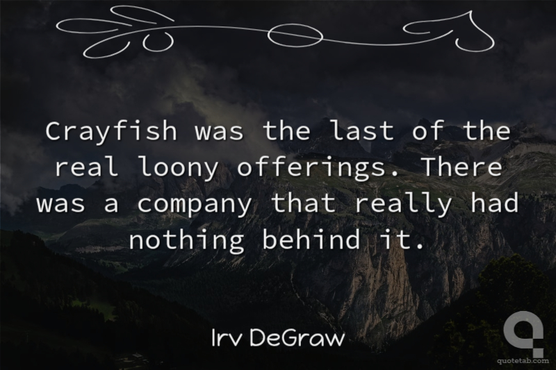 Crayfish was the last of the real loony offerings. There was a company that really had nothing behind it.