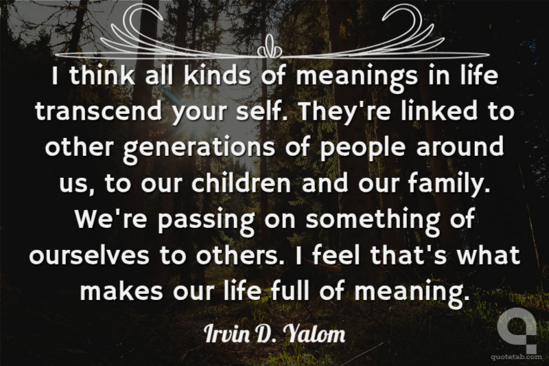 I think all kinds of meanings in life transcend your self. They're linked to other generations of people around us, to our children and our family. We're passing on something of ourselves to others. I feel that's what makes our life full of meaning.
