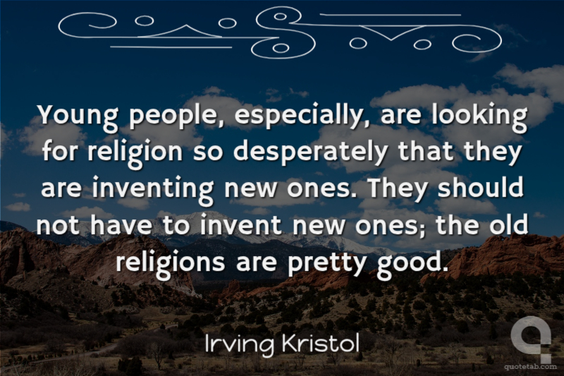 Young people, especially, are looking for religion so desperately that they are inventing new ones. They should not have to invent new ones; the old religions are pretty good.