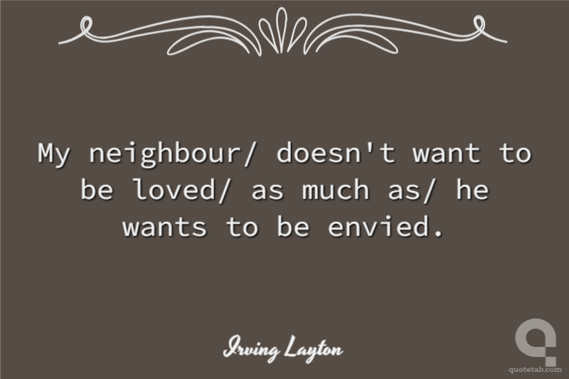 My neighbour/ doesn't want to be loved/ as much as/ he wants to be envied.