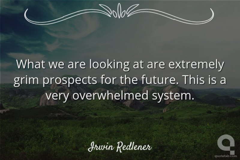 What we are looking at are extremely grim prospects for the future. This is a very overwhelmed system.