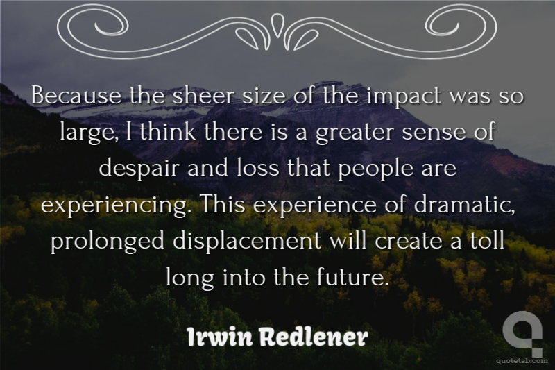 Because the sheer size of the impact was so large, I think there is a greater sense of despair and loss that people are experiencing. This experience of dramatic, prolonged displacement will create a toll long into the future.