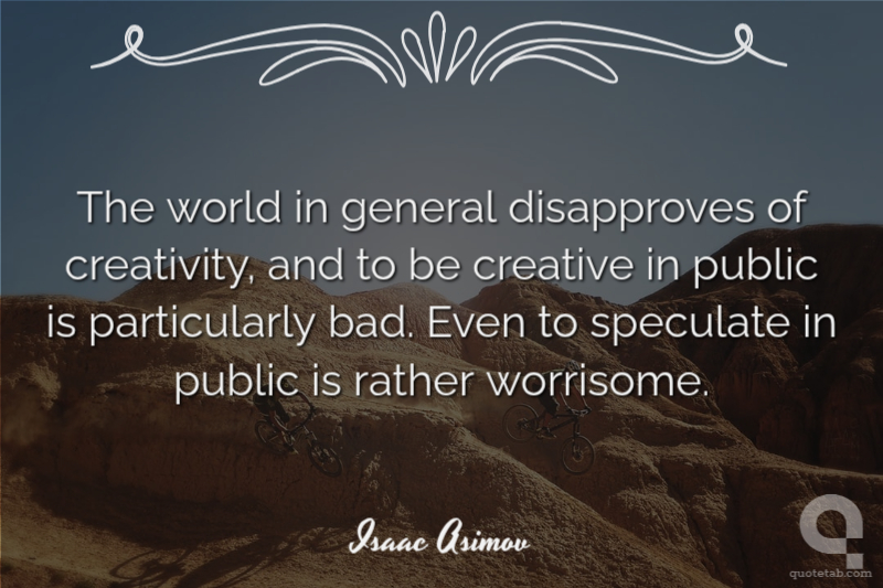 The world in general disapproves of creativity, and to be creative in public is particularly bad. Even to speculate in public is rather worrisome.