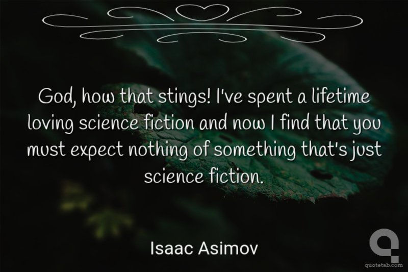 God, how that stings! I've spent a lifetime loving science fiction and now I find that you must expect nothing of something that's just science fiction.
