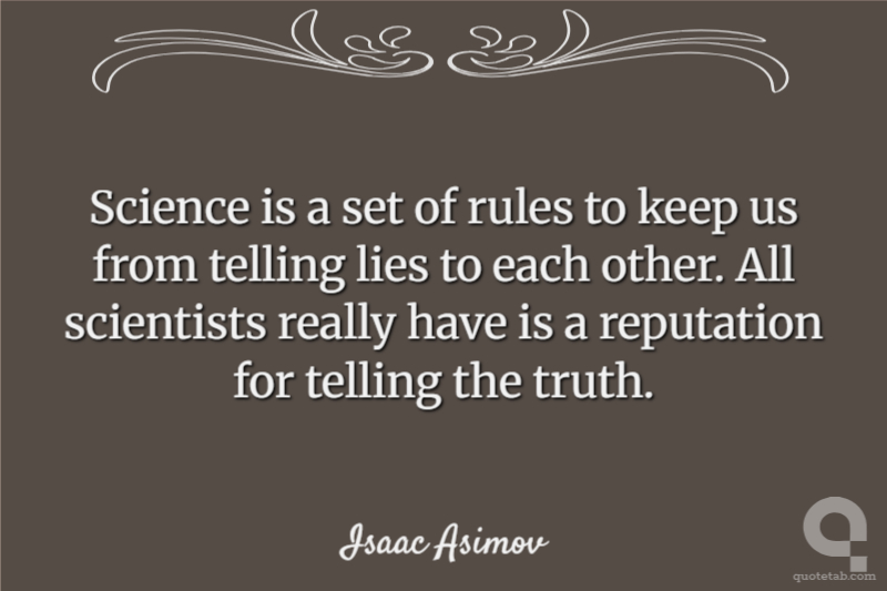 Science is a set of rules to keep us from telling lies to each other. All scientists really have is a reputation for telling the truth.