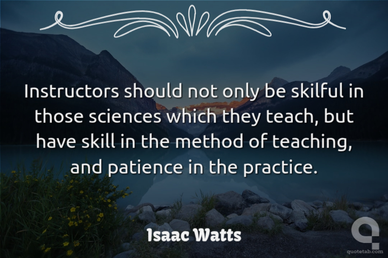 Instructors should not only be skilful in those sciences which they teach, but have skill in the method of teaching, and patience in the practice.