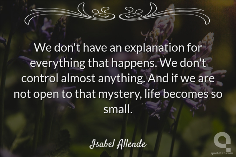 We don't have an explanation for everything that happens. We don't control almost anything. And if we are not open to that mystery, life becomes so small.