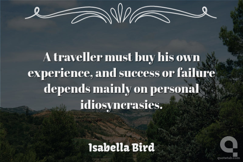 A traveller must buy his own experience, and success or failure depends mainly on personal idiosyncrasies.