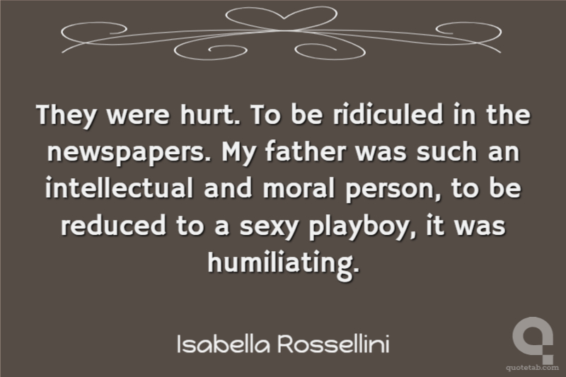 They were hurt. To be ridiculed in the newspapers. My father was such an intellectual and moral person, to be reduced to a sexy playboy, it was humiliating.