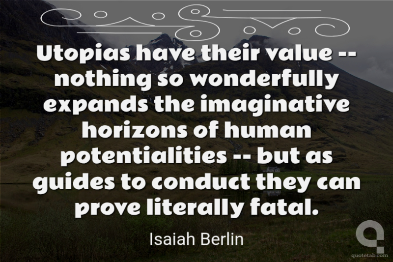 Utopias have their value -- nothing so wonderfully expands the imaginative horizons of human potentialities -- but as guides to conduct they can prove literally fatal.