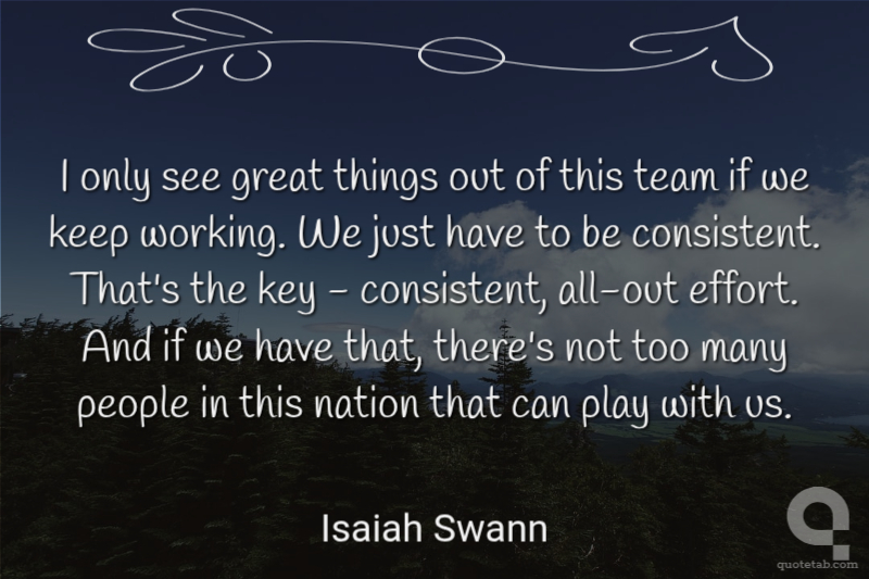 I only see great things out of this team if we keep working. We just have to be consistent. That's the key - consistent, all-out effort. And if we have that, there's not too many people in this nation that can play with us.