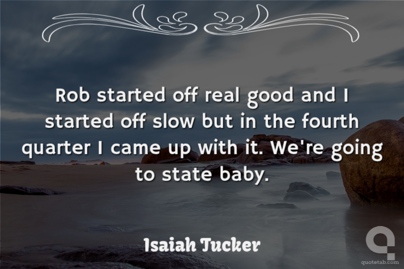 Rob started off real good and I started off slow but in the fourth quarter I came up with it. We're going to state baby.