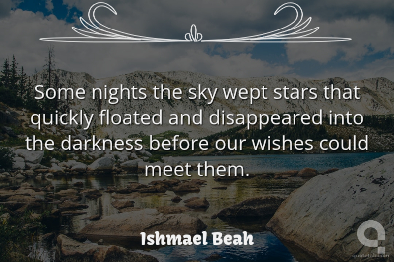 Some nights the sky wept stars that quickly floated and disappeared into the darkness before our wishes could meet them.
