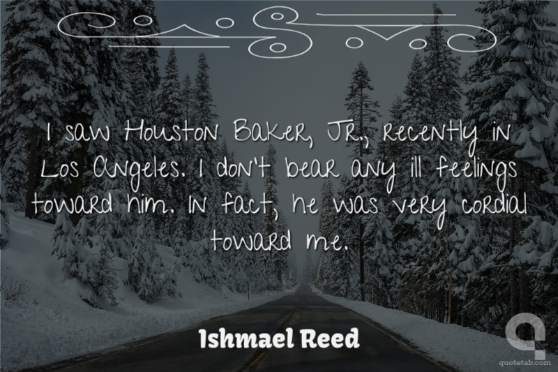 I saw Houston Baker, Jr., recently in Los Angeles. I don't bear any ill feelings toward him. In fact, he was very cordial toward me.