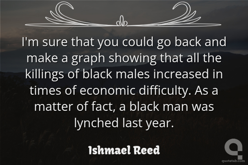 I'm sure that you could go back and make a graph showing that all the killings of black males increased in times of economic difficulty. As a matter of fact, a black man was lynched last year.
