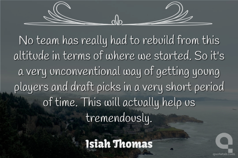 No team has really had to rebuild from this altitude in terms of where we started. So it's a very unconventional way of getting young players and draft picks in a very short period of time. This will actually help us tremendously.
