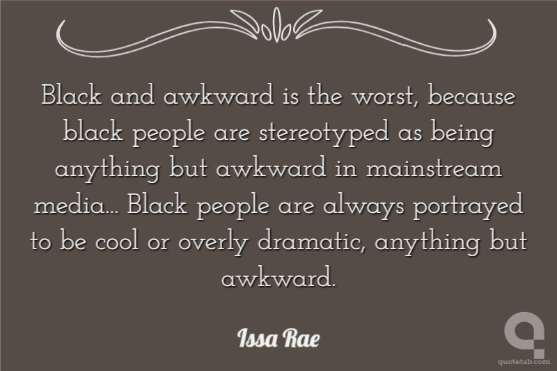 Black and awkward is the worst, because black people are stereotyped as being anything but awkward in mainstream media... Black people are always portrayed to be cool or overly dramatic, anything but awkward.