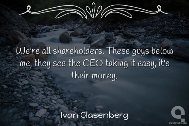 We're all shareholders. These guys below me, they see the CEO taking it easy, it's their money.
