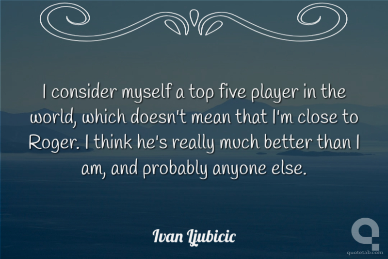 I consider myself a top five player in the world, which doesn't mean that I'm close to Roger. I think he's really much better than I am, and probably anyone else.