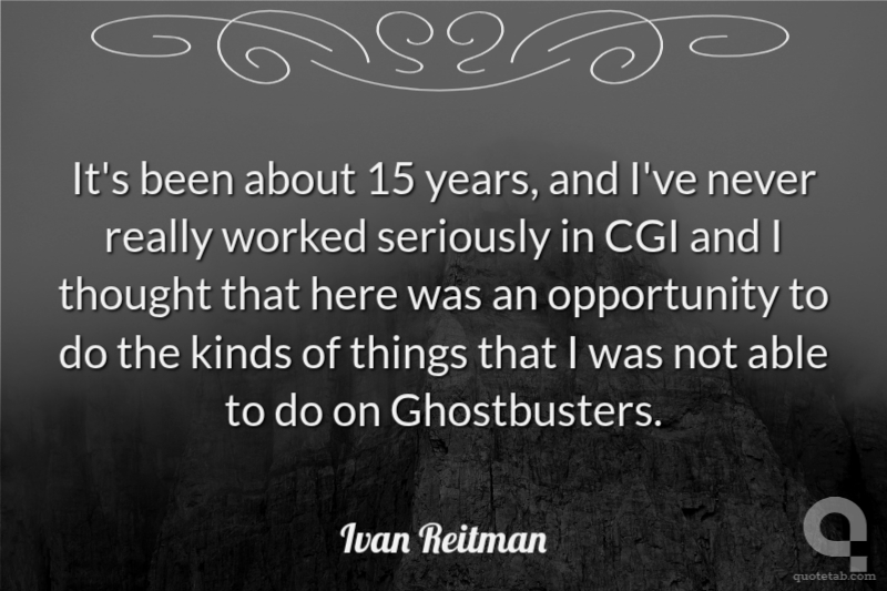 It's been about 15 years, and I've never really worked seriously in CGI and I thought that here was an opportunity to do the kinds of things that I was not able to do on Ghostbusters.