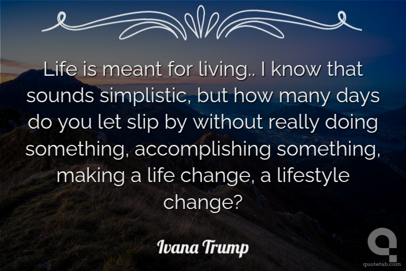 Life is meant for living.. I know that sounds simplistic, but how many days do you let slip by without really doing something, accomplishing something, making a life change, a lifestyle change?