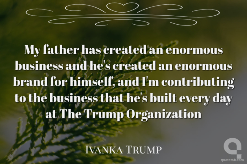 My father has created an enormous business and he's created an enormous brand for himself, and I'm contributing to the business that he's built every day at The Trump Organization