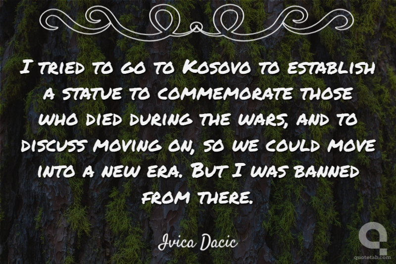 I tried to go to Kosovo to establish a statue to commemorate those who died during the wars, and to discuss moving on, so we could move into a new era. But I was banned from there.