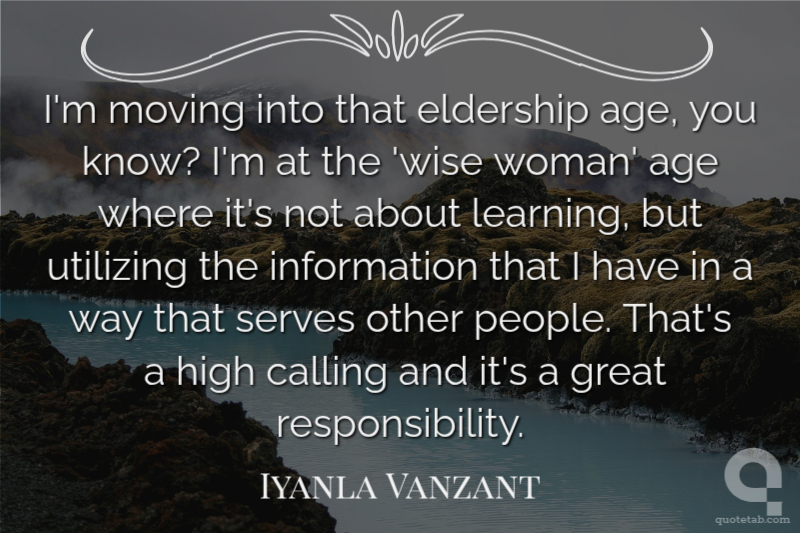 I'm moving into that eldership age, you know? I'm at the 'wise woman' age where it's not about learning, but utilizing the information that I have in a way that serves other people. That's a high calling and it's a great responsibility.