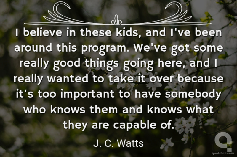 I believe in these kids, and I've been around this program. We've got some really good things going here, and I really wanted to take it over because it's too important to have somebody who knows them and knows what they are capable of.