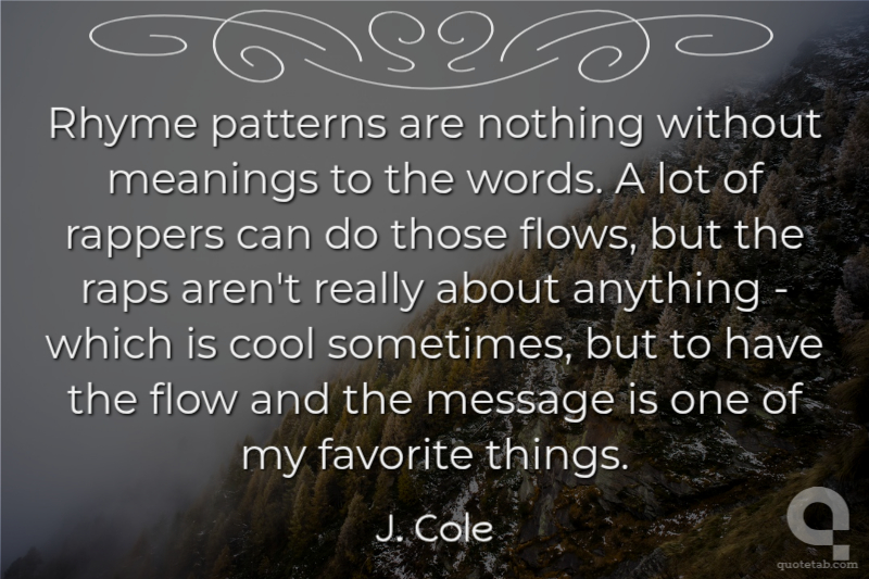 Rhyme patterns are nothing without meanings to the words. A lot of rappers can do those flows, but the raps aren't really about anything - which is cool sometimes, but to have the flow and the message is one of my favorite things.