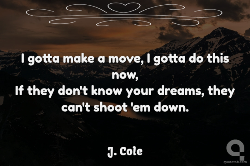 I gotta make a move, I gotta do this now, If they don't know your dreams, they can't shoot 'em down.