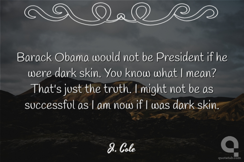 Barack Obama would not be President if he were dark skin. You know what I mean? That's just the truth. I might not be as successful as I am now if I was dark skin.
