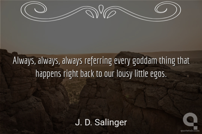 Always, always, always referring every goddam thing that happens right back to our lousy little egos.