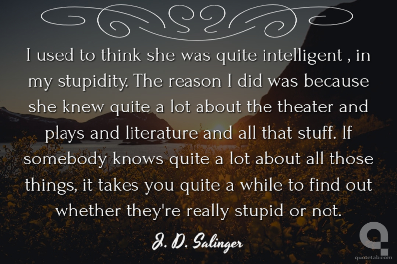 I used to think she was quite intelligent , in my stupidity. The reason I did was because she knew quite a lot about the theater and plays and literature and all that stuff. If somebody knows quite a lot about all those things, it takes you quite a while to find out whether they're really stupid or not.
