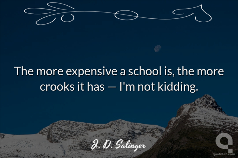 Pencey was full of crooks. Quite a few guys came from these wealthy families, but it was full of crooks anyway. The more expensive a school is, the more crooks it has - I'm not kidding.