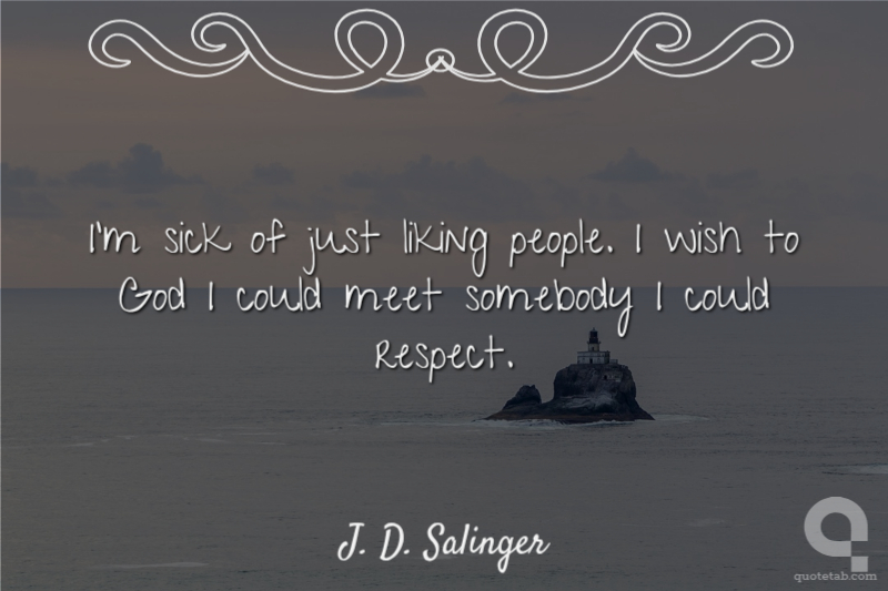 I'm sick of just liking people. I wish to God I could meet somebody I could respect.