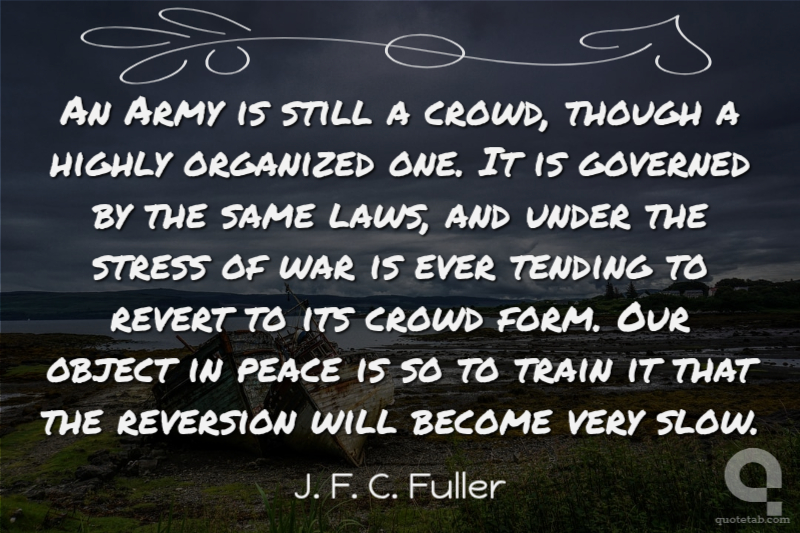 An Army is still a crowd, though a highly organized one. It is governed by the same laws, and under the stress of war is ever tending to revert to its crowd form. Our object in peace is so to train it that the reversion will become very slow.