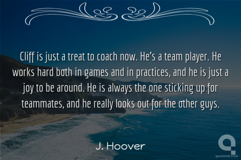 Cliff is just a treat to coach now. He's a team player. He works hard both in games and in practices, and he is just a joy to be around. He is always the one sticking up for teammates, and he really looks out for the other guys.