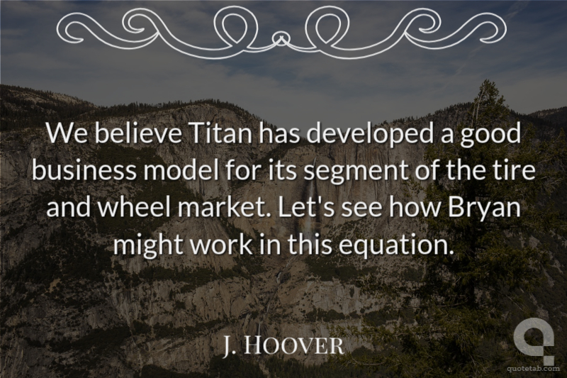 We believe Titan has developed a good business model for its segment of the tire and wheel market. Let's see how Bryan might work in this equation.