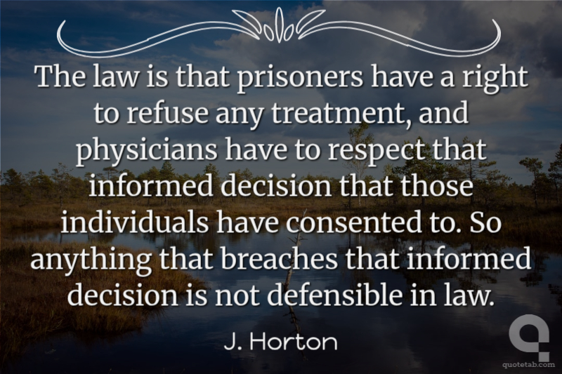 The law is that prisoners have a right to refuse any treatment, and physicians have to respect that informed decision that those individuals have consented to. So anything that breaches that informed decision is not defensible in law.