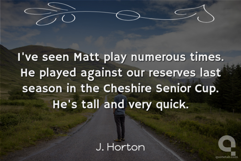 I've seen Matt play numerous times. He played against our reserves last season in the Cheshire Senior Cup. He's tall and very quick.