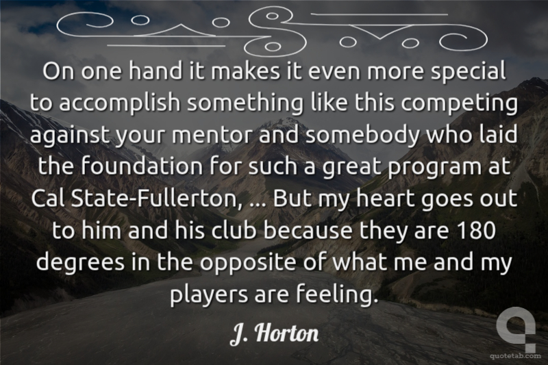 On one hand it makes it even more special to accomplish something like this competing against your mentor and somebody who laid the foundation for such a great program at Cal State-Fullerton, ... But my heart goes out to him and his club because they are 180 degrees in the opposite of what me and my players are feeling.
