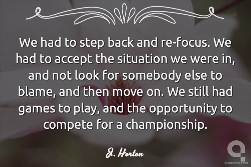 We had to step back and re-focus. We had to accept the situation we were in, and not look for somebody else to blame, and then move on. We still had games to play, and the opportunity to compete for a championship.