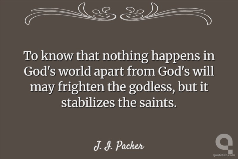 To know that nothing happens in God's world apart from God's will may frighten the godless, but it stabilizes the saints.