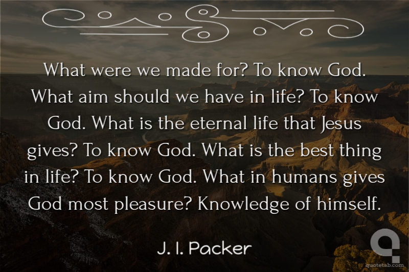 What were we made for? To know God. What aim should we have in life? To know God. What is the eternal life that Jesus gives? To know God. What is the best thing in life? To know God. What in humans gives God most pleasure? Knowledge of himself.