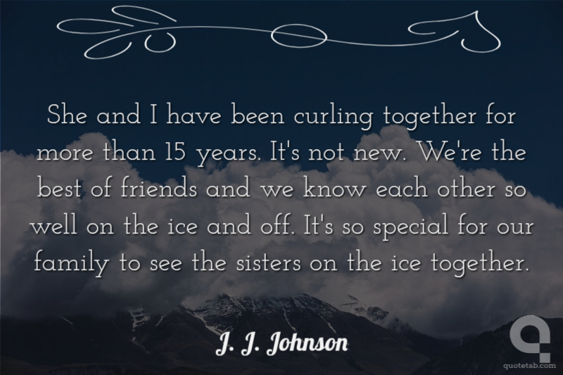She and I have been curling together for more than 15 years. It's not new. We're the best of friends and we know each other so well on the ice and off. It's so special for our family to see the sisters on the ice together.